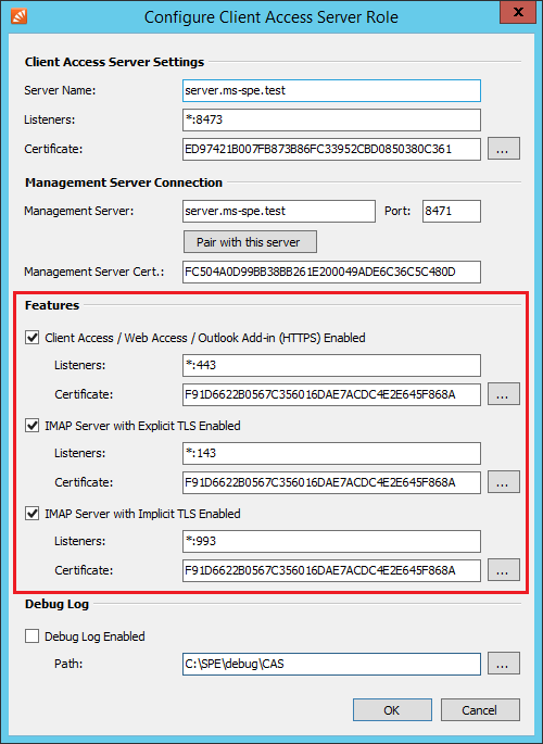 N.B.: non è necessario aggiornare il certificato nella sezione Client Access Server Settings. Se lo si fa, bisognerà ripetere il pairing del Client Access Server con il Management server (tasto Pair).